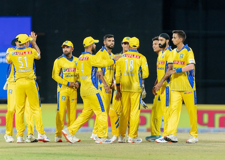 Central Delhi Kings delivered a dominant all-round performance to register a thumping 9-wicket win over South Delhi Superstarz in a Season 2 clash of the Delhi Premier League (DPL) at the Arun Jaitley Stadium here on Thursday night. Bowling first, the Kings’ bowling attack came out all guns blazing, completely dismantling the Superstarz batting line-up. None of the South Delhi batters could find any rhythm as wickets kept tumbling at regular intervals. The innings never took off, and they were eventually bowled out for a meagre 80 runs in just 15.4 overs. Tejas Baroka led the charge with the ball, returning with excellent figures of 3 for 12 in his full quota of 4 overs. His tight lines and clever variations kept the batters under constant pressure. He was well supported by pacer Simarjeet Singh, who also picked up three wickets, conceding just 15 runs in 3 overs. Chasing a modest target of 81, Central Delhi Kings openers Yash Dhull and Siddharth Joon got off to a flying start, adding 40 runs for the first wicket inside 4 overs. Joon, in particular, was in a punishing mood, smashing a quick-fire 32 off just 10 deliveries, including several boundaries and maximums. After his dismissal, Yugal Saini joined Dhull at the crease and ensured there were no hiccups in the chase. Dhull anchored the innings with a calm and composed unbeaten 29 off 15 balls, while Saini chipped in with a steady 12* off 12 deliveries. The Kings sealed the win in just 6 overs, showcasing their bowling firepower and top-order strength. Earlier in the first match of the day, Purani Dilli 6 edged out West Delhi Lions by 15 runs in a high-octane clash. Brief scores: South Delhi Superstarz 80 all out in 15.4 overs (Simarjeet Singh 3-15, Tejas Baroka 3-12) lost to Central Delhi Kings- 82/1 (Siddharth Joon: 32, Yash Dhull 29 not out) by nine wickets. It was a spirited all-round performance by Purani Dilli 6, who held their nerves in the closing stages to seal a win. –IANS bsk/