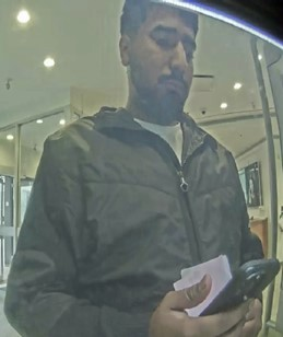 - Suspect #1 is described as male, 5’7″ – 5’10″ tall, 25-35 years old, brown eyes, with a medium build, short black hair, and a trimmed black beard.